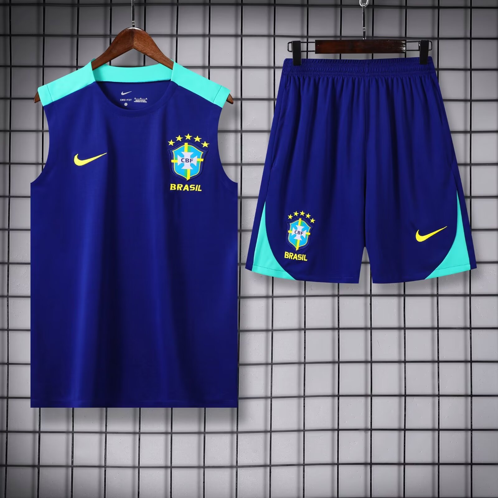 2024 Brazil pre-match training Blue Jersey+Shorts 1:1 Thai Quality