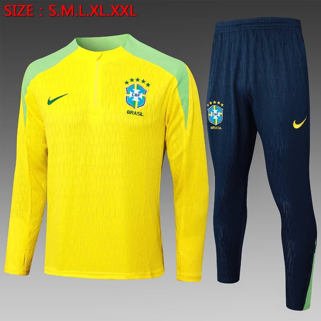 2024 Brazil Half-Pull Training Suit Yellow Football Shirt 1:1 Thai Quality