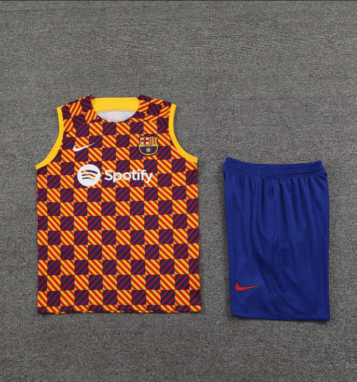 2023/2024 Barcelona pre-match training Wearr Striped Jersey+Shorts 1:1 Thai Quality