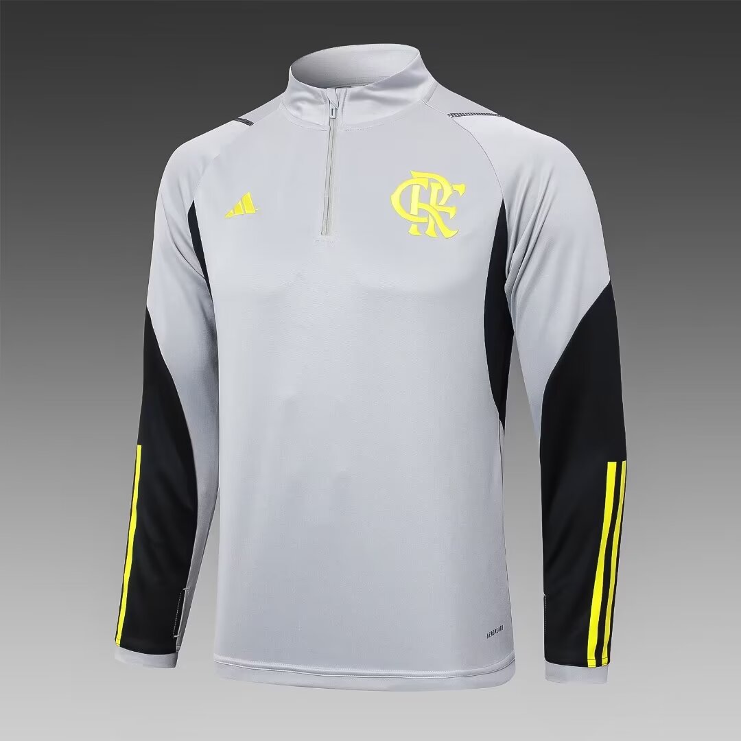 - 2024/2025 Flamengo Half-Pull Training Suit Grey Football Shirt 1:1 Thai Quality