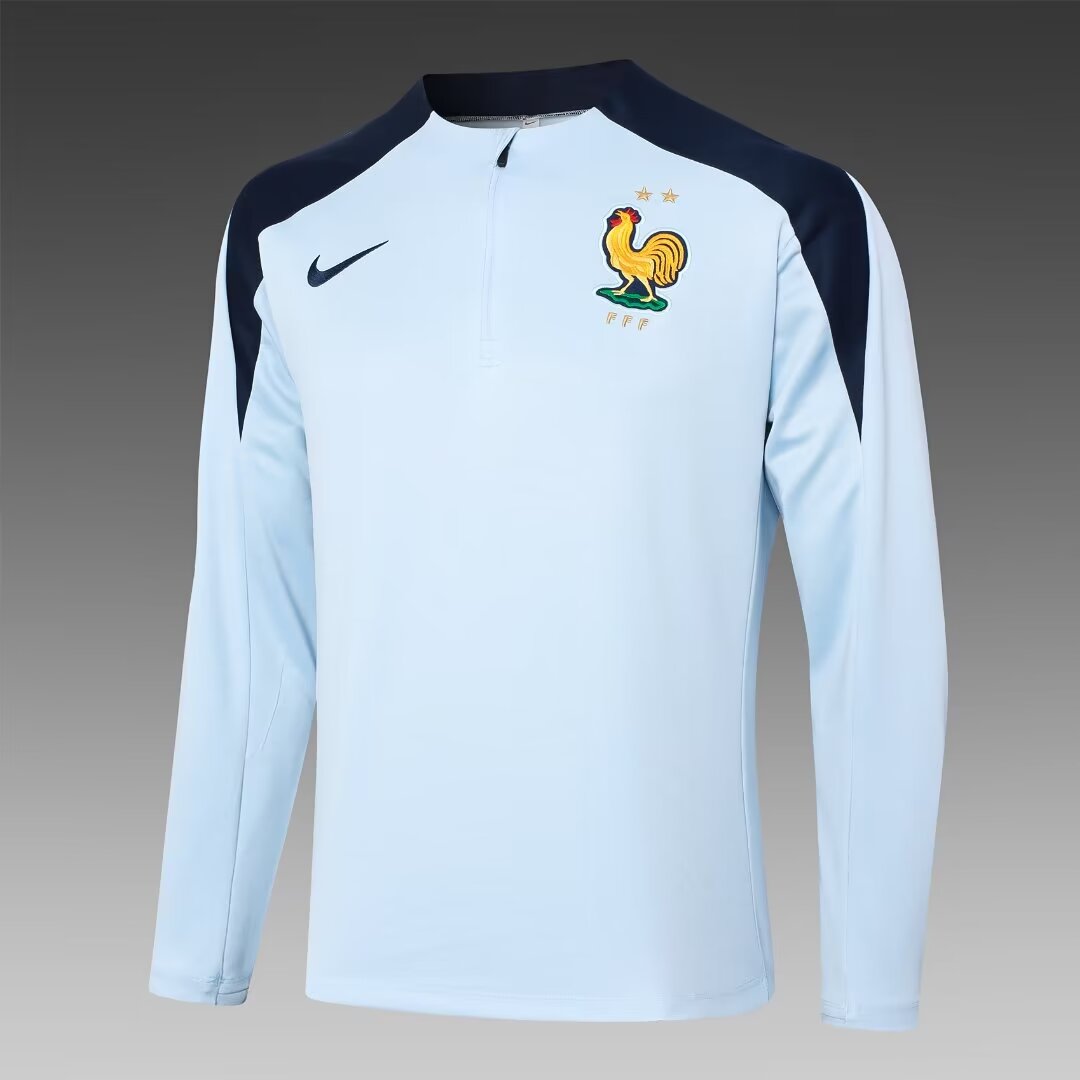- 2024 France Half-Pull Training Suit Light Blue Football Shirt 1:1 Thai Quality