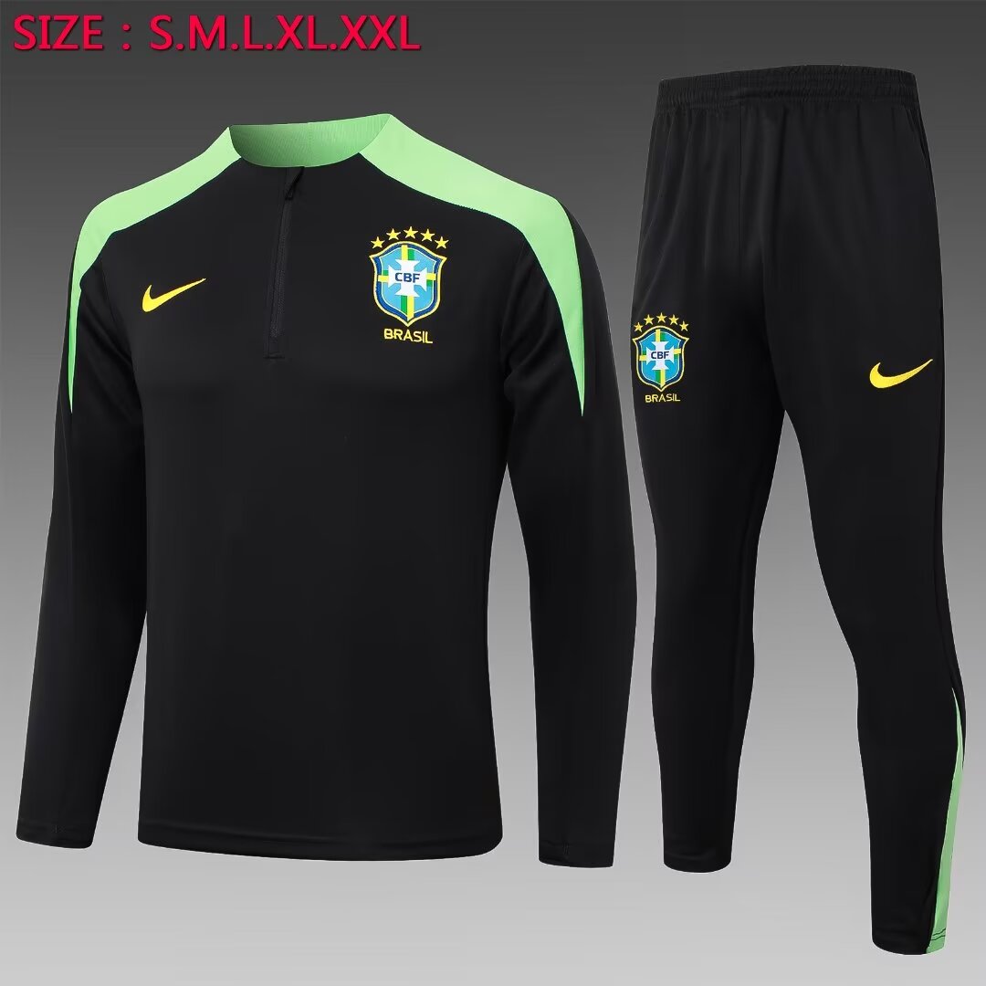 2024 Brazil Half-Pull Training Suit Black Football Shirt 1:1 Thai Quality