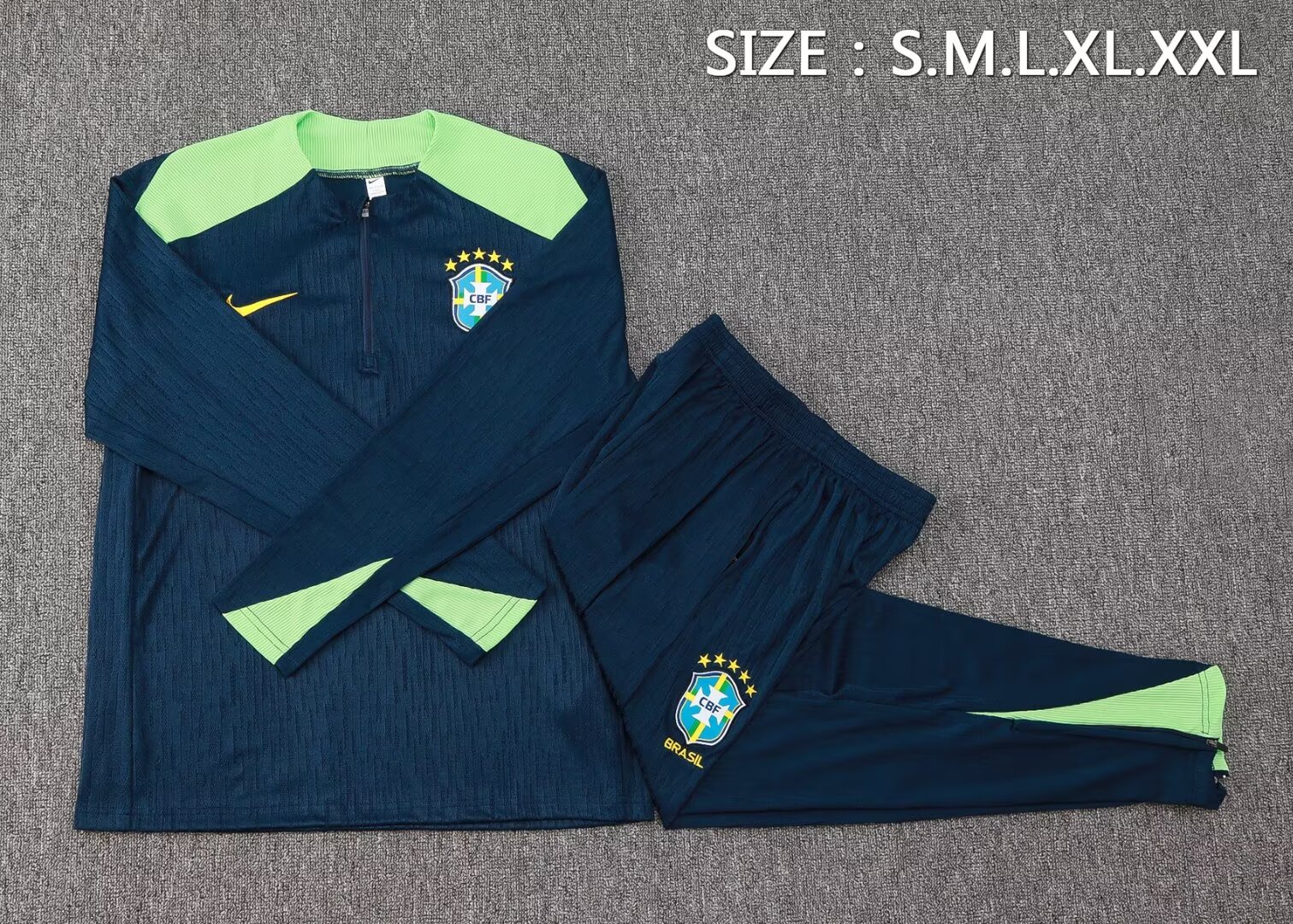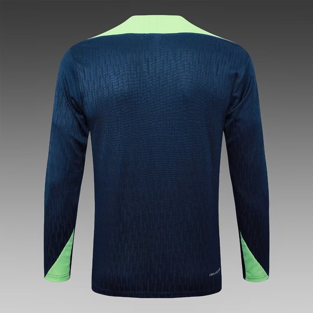 - 2024 Brazil Half-Pull Training Suit Dark Blue Football Shirt 1:1 Thai Quality