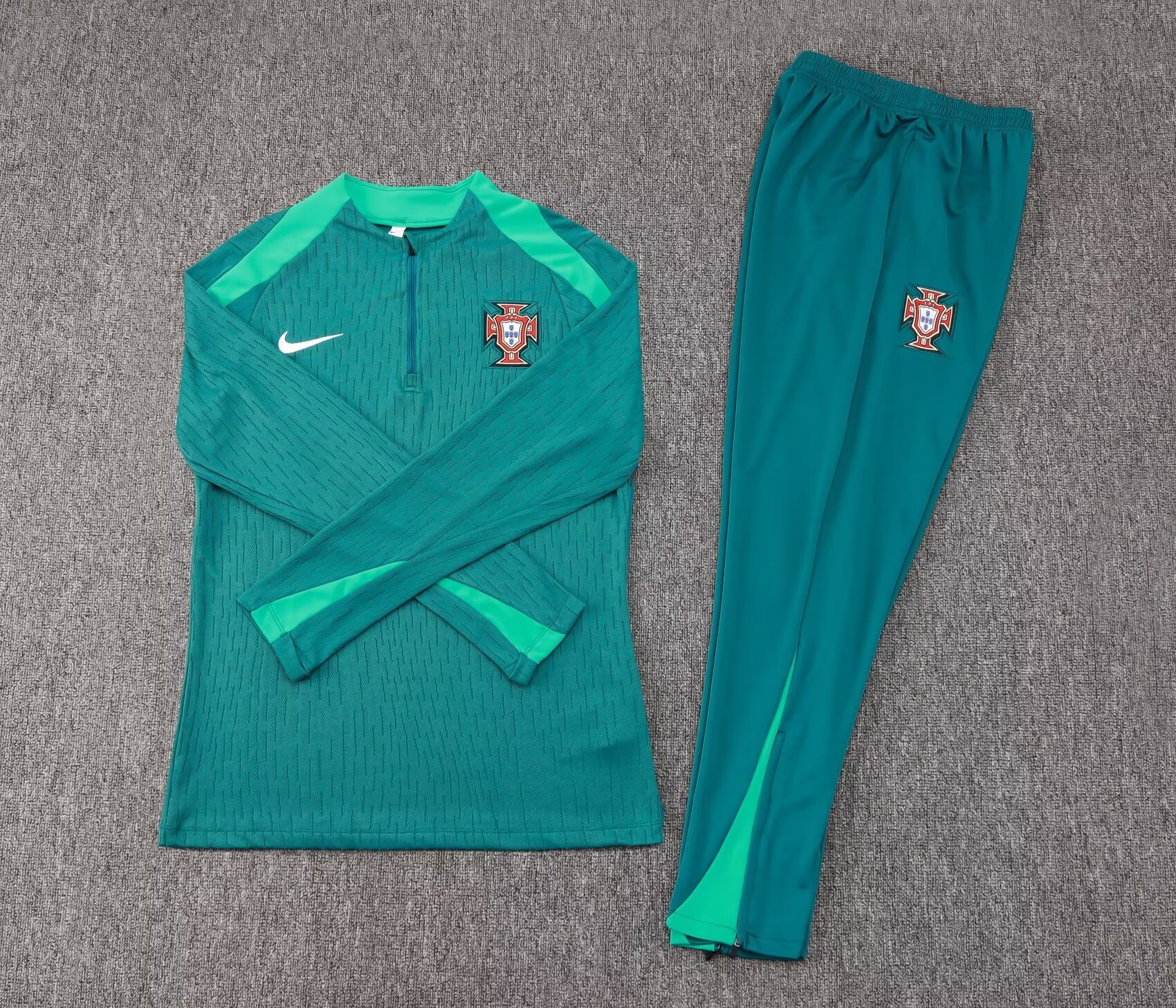 - 2024 Portugal Half-Pull Training Suit Dark Green Football Jersey 1:1 Thai Quality