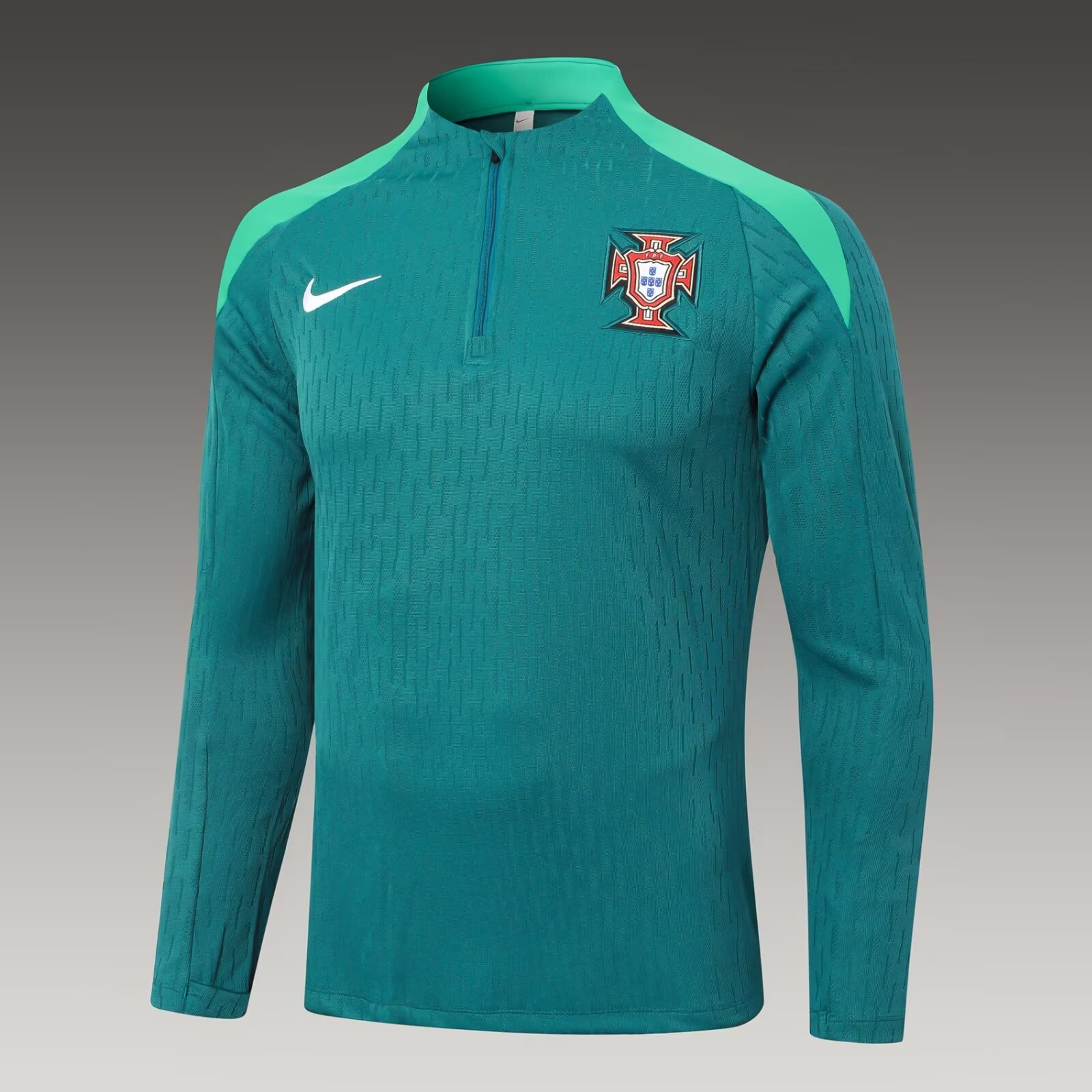 - 2024 Portugal Half-Pull Training Suit Dark Green Football Jersey 1:1 Thai Quality