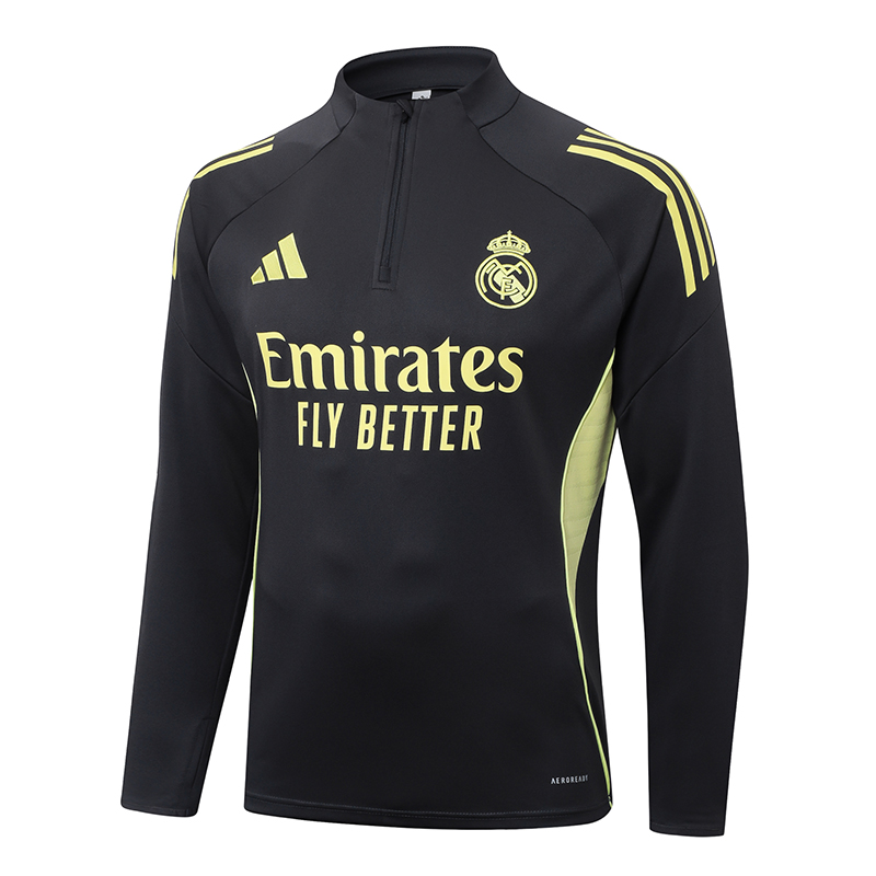 - 2025-2026 Real Madrid Dark Gray Half-Pull Training Suit Football Shirt 1:1 Thai Quality Set